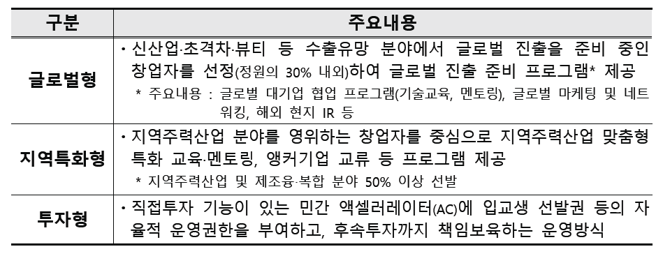 - 교육 및 코칭 : 창업교육, 사업화 코칭 등 단계별 진도 관리